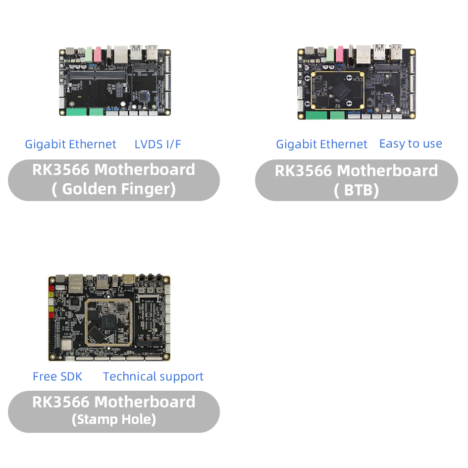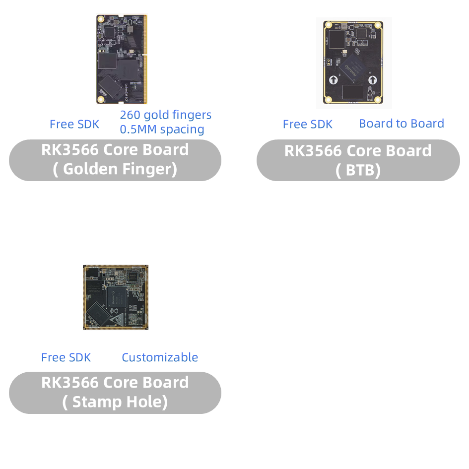 Разработили сме 3 различни основни табла, те са: RK3566 Основна дъска на щампа, RK3566 Golden Finger (подобно на SMARC) Core Board и RK3566 BTB (дъска на борда) Core Board.