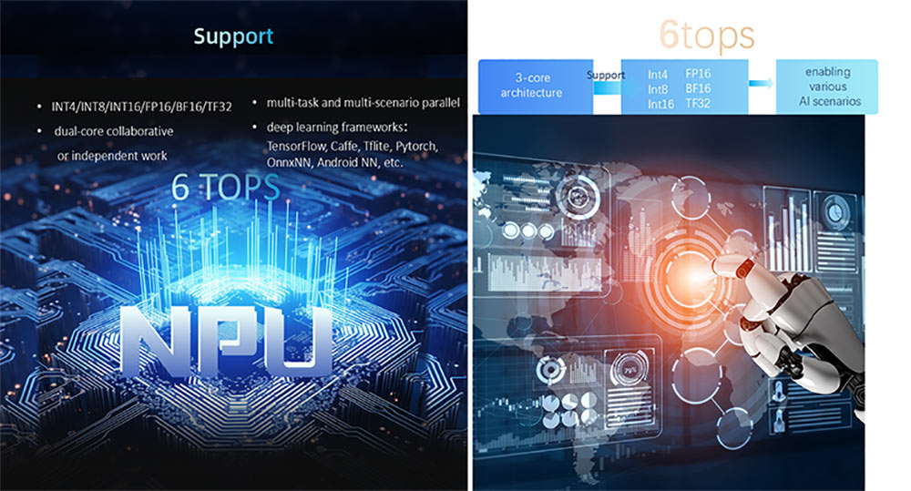 4. Edge AI: Интегрираният 6 върха NPU дава възможност на разработчиците да изграждат AI приложения с ниска латентност като системи за разпознаване на лица и интелигентни сензори.