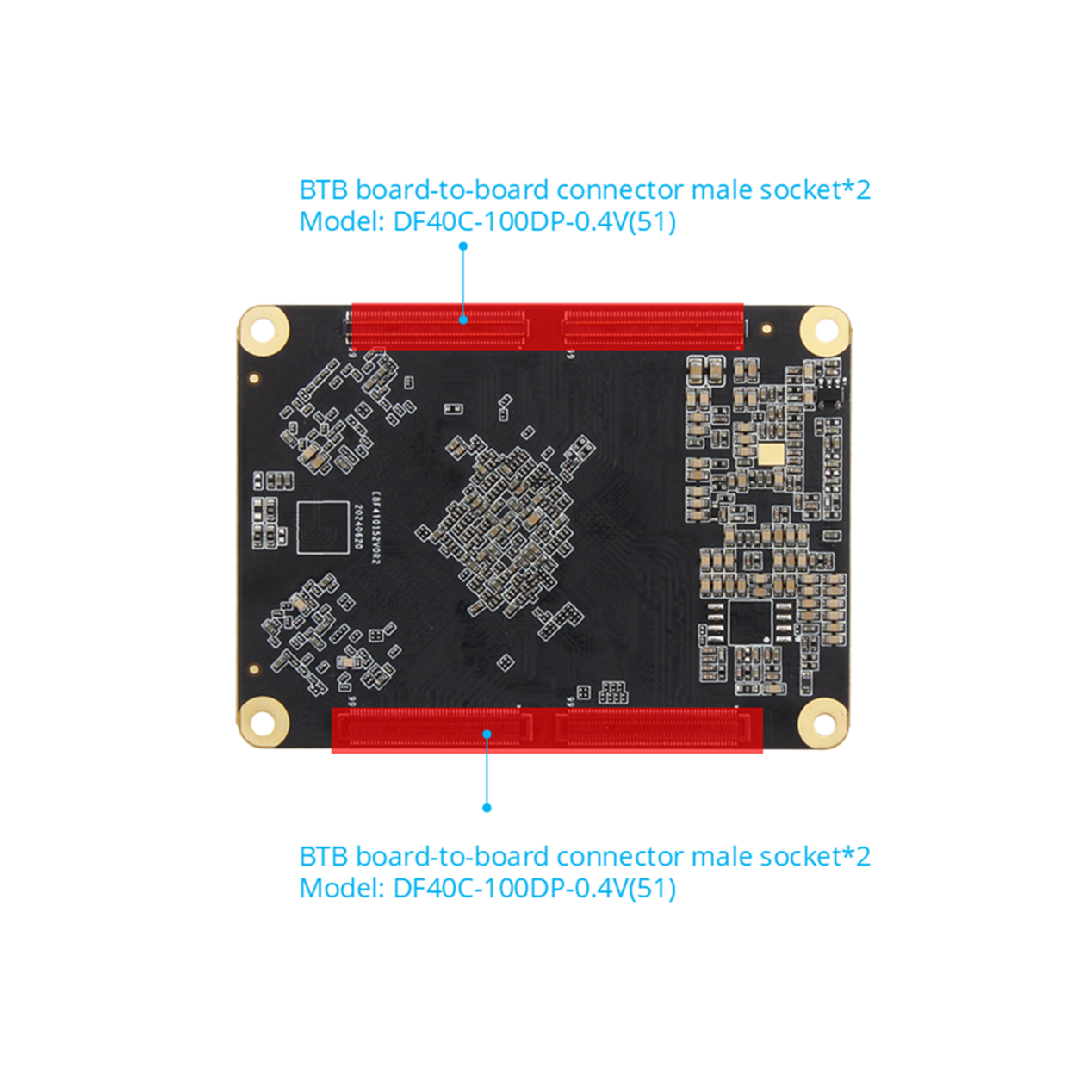 • Структурни предимства: Theдъска до дъскаархитектурата значително съкращава циклите на научноизследователска и развойна дейност и ускорява времето за излизане на пазара. Той елиминира необходимостта от сложни високоскоростни вериги и отстраняване на грешки (като DDR и PCIe), позволявайки на клиентите да се съсредоточат единствено върху разработването на приложните функции на основната платка. Това значително намалява бариерата и рисковете при хардуерния дизайн. Компактният размер на основната платка я прави идеална за вградена интеграция. Архитектурата от платка до платка улеснява поддръжката и надстройките, спестявайки разходи и време за последващи надстройки на продукта. Най-важното е, че клиентите могат свободно да персонализират основната платка въз основа на техните изисквания на проекта, като използват същата основна дъска.
