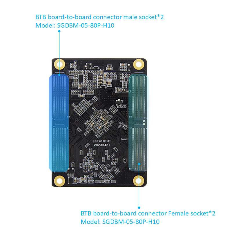 Той има висока интеграция и богати разширителни интерфейси и е оборудван с двойни Gigabit Ethernet портове, HDMI, EDP, 5Minipcle, SATA, M.2, USB3.0, USB2.0, MIPI екран интерфейс, интерфейс на камерата на MIPI, аудио интерфейс и други периферии, които могат да дадат пълна игра на производителността на процесора и допълнително разширяване на суперантите на използването на плачката.